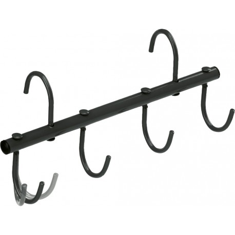 Peu encombrant, cet accroche-tout en acier gainé P.V.C. est équipé de crochets rotatifs pliables permettant un gain de place lors du rangement.