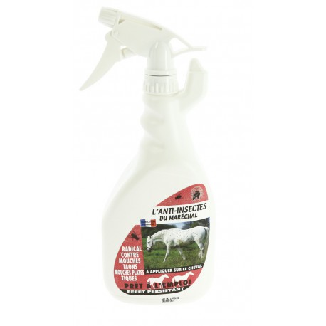 L’anti-insectes du Maréchal est répulsif à appliquer sur le cheval. Prêt à l’emploi, permet de protéger efficacement contre les mouches plates, tiques, taons, l’environnement de vos animaux. Cette formule à base de pyréthrine d’origine naturelle permet un effet foudroyant dès le premier traitement.