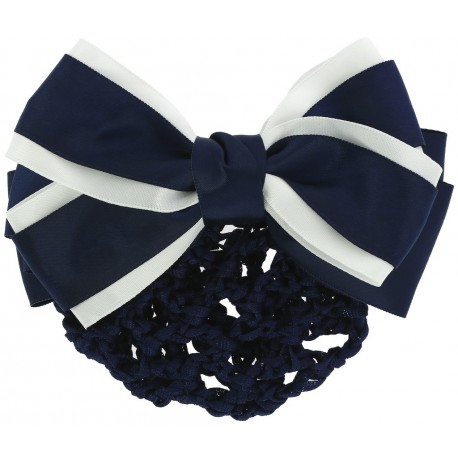 Pince à cheveux avec noeud bicolore marine et blanc.