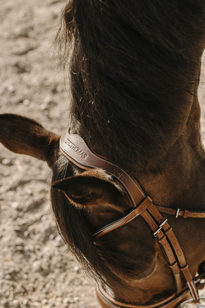 – Design sophistiqué : Frontal galbé arrondi et muserolle suédoise.