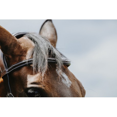 Bridon en cuir de buffle, sans muserolle et sans sous gorge.