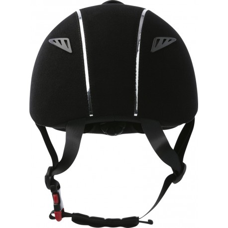 Coque recouverte de microfibres, bordures de zone médiane incrustées d’une bande chromée en TPU, aération frontale coloris chromé.