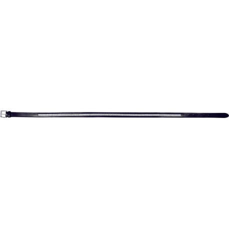 Seyante et discrète, en cuir de buffle bombé carré, décorée d’une fine surpiqûre blanche en bordure et en motif. Largeur adaptée aux passants des culottes d’équitation. Boucle à rouleau polie forme rectangle.