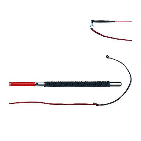 Poignée longue en caoutchouc antidérapant avec culot métallique. Flotte nylon tressé à tourillon.