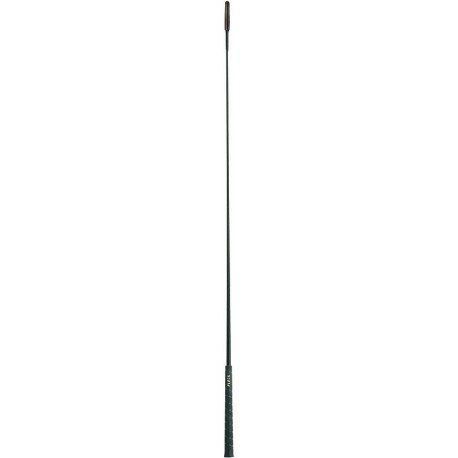 Corps en fibre de verre recouvert nylon tressé. Claquette fine cousue en cuir. Poignée golf.