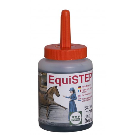 EQUISTEP® soigne, protège, régénère et favorise la croissance du sabot. Il prévient du dessèchement ainsi que du ramollissement. EQUISTEP® pénètre vite et en profondeur jusqu’à la ligne blanche, hydrate et consolide la corne. Utilisé régulièrement, il prévient la formation de seimes, empêche la fragmentation de la corne, les fissures, la perte de fers et des sabots pourris. EQUISTEP® favorise la respiration de la corne et ne bloque pas les pores. La corne garde sa fonction de barrière contre diverses maladies et bactéries. Les sabots sont fortifiés.