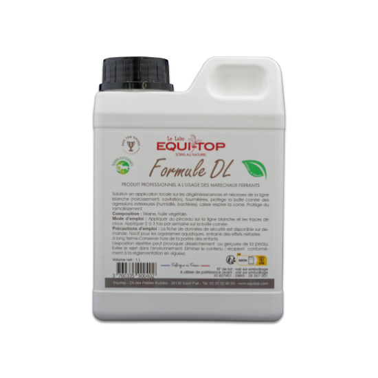 Près de 80 applications sur les quatre pieds font de FORMULE DL un produit très économique pour l’entretien de la boîte cornée pendant plusieurs mois.