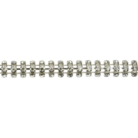 Frontal 3 bandes de strass montées sur une chaînette bombée en laiton nickelé. Largeur : 7 mm