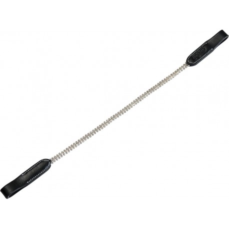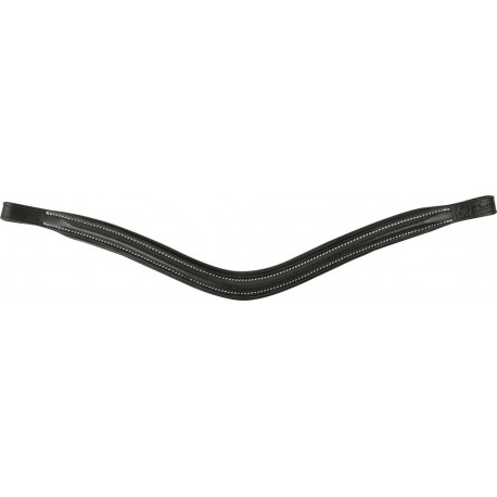 Frontal « bombé rond », devant en « V », doublé cuir vachette avec surpiqûres contrastées blanches sur les bordures. Largeur : 16 mm.