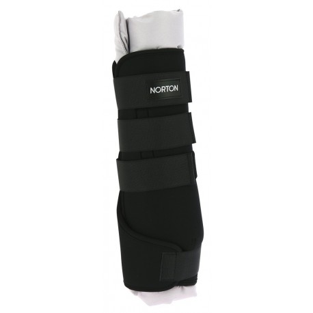 Sans risque, faciles et rapides à poser, les guêtres de repos NORTON sont le compromis idéal pour les cavaliers pressés, au box ou pour le transport. Coque en néoprène anatomique avec découpe spéciale antérieur et postérieur englobant le boulet et fermeture par bandes auto-agrippantes. Intérieur en polyester sergé amovible par bande auto-agrippante avec épais matelassage polyfil 250 g. Lavable en machine à 30°C.