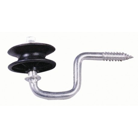 Isolateur d’angle avec poulie spécialement conçu pour permettre le passage d’un fil ou d’un cordon de clôture dans un angle.