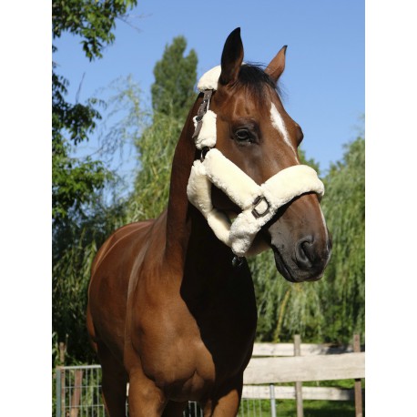Avec têtière et muserolle réglables, matelassées et doublées cuir ton sur ton et surpiqûres blanches décoratives. Il est équipé de mousquetons pour ouverture rapide de la sous-gorge de part et d’autre et au niveau de l’alliance. Plaque de personnalisation sur montant et bouclerie en métal chrome.