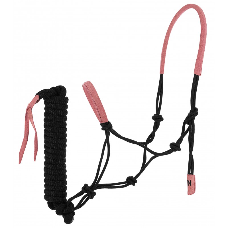 – Licol en corde polypropylène 6 mm, réglable par noeuds.