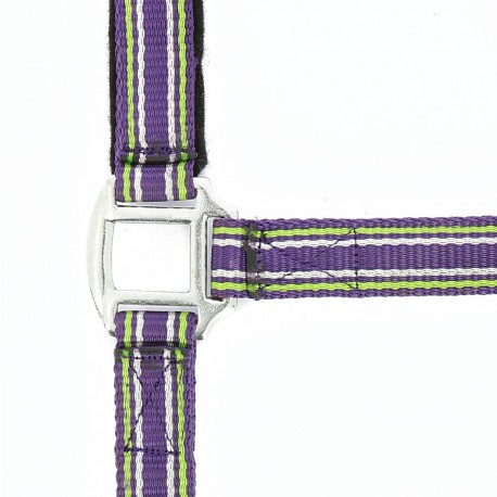 En polypropylène triple épaisseur, ce licol est très résistant et peut supporter une utilisation intensive. Pour plus de facilité de pose et un meilleur ajustement, la têtière et la muserolle sont réglables par boucles. Disponible Uniquement en Prune/Vert/Blanc.