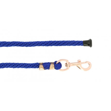 En polypropylène. Mousqueton tournant en métal coloris or rose. Taille : 2 m