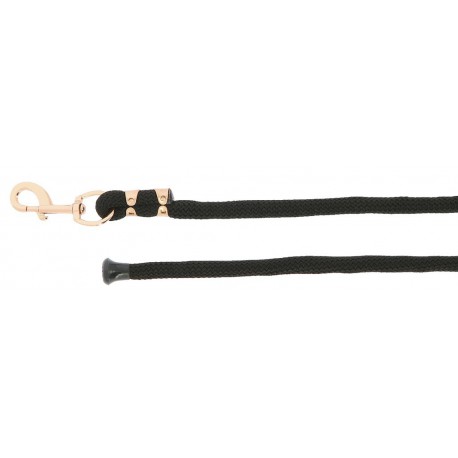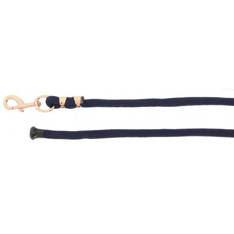 En polypropylène équipée d’un mousqueton tournant en métal. Bouclerie or rose ou argentée. Taille : 2,20 m