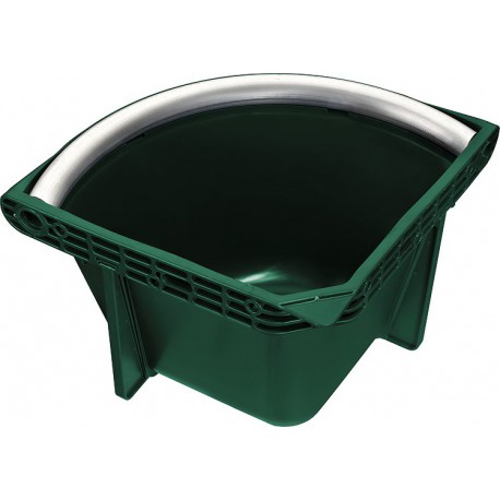 Mangeoire d’angle en polypropylène avec bord anti-tic en aluminium.