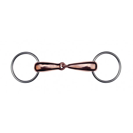 En cyprium, canons fins. Peut s’utiliser seul ou sur une bride, pour chevaux peu sensibles. Epaisseur du canon : 13 mm, Diamètre des anneaux : 50 mm, Canons : pleins