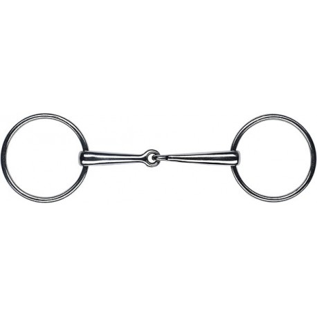 En inox, canons pleins et fins, grands anneaux à effet canalisateur. Peut s’utiliser seul ou sur une bride, pour chevaux peu sensibles. Epaisseur du canon : 13 mm, Diamètre des anneaux : 70 mm, Canons : pleins