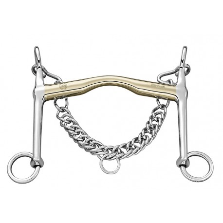 Mors de bride « Bemelmans » 14 mm, avec branches partie basse 7 cm – Sensogan avec branches en acier inox. Epaisseur du canon : 14 mm, Longueur des branches : 70 mm