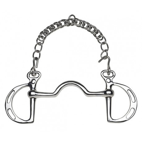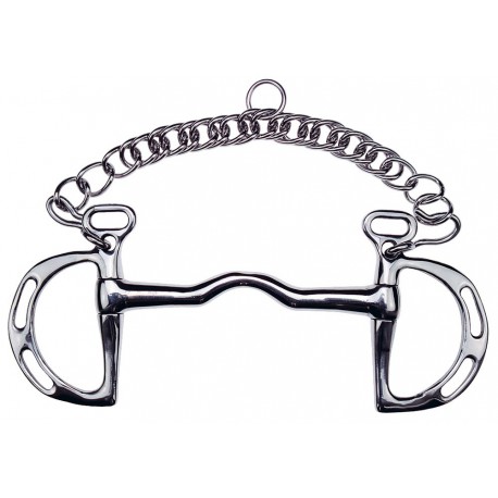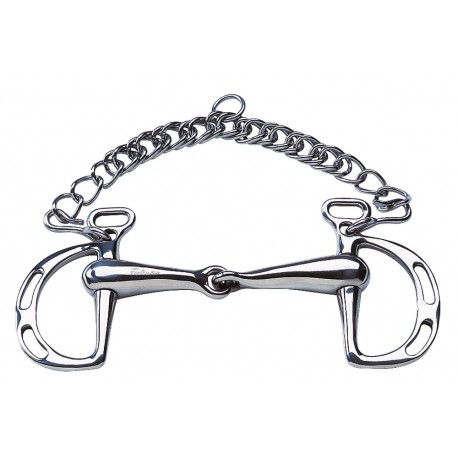 A passes, droit en inox, avec passage de langue. Canon fin. Epaisseur du canon : 12,7 mm, Diamètre des anneaux : 65 mm, Canons : pleins