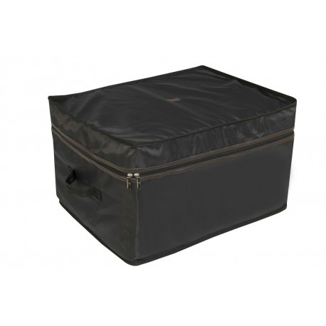 En polyester brillant 600D. Permet de stocker à l’abri de la poussière une couverture ou plusieurs chemises à l’intersaison, vos tapis de selle, amortisseurs, couvre-reins, protections de transport ou bandes. Zone ajourée en mesh double épaisseur à l’arrière pour assurer une aération, intérieur en fausse fourrure. Équipé d’une fermeture à glissière latérale et de 2 poignées de transport. Utile aussi à la maison pour le rangement et la protection des couvertures, couettes, coussins et draps. Taille : L 66 x L 53 x P 40 cm
