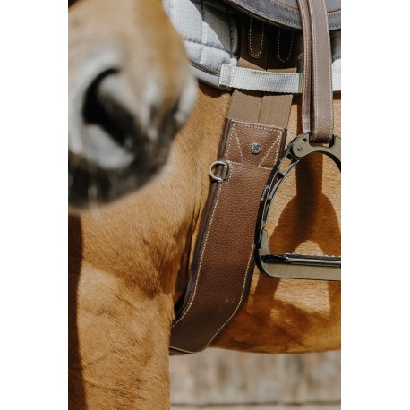 Sangle anatomique en cuir de buffle grainé et doublé en cuir vachette.