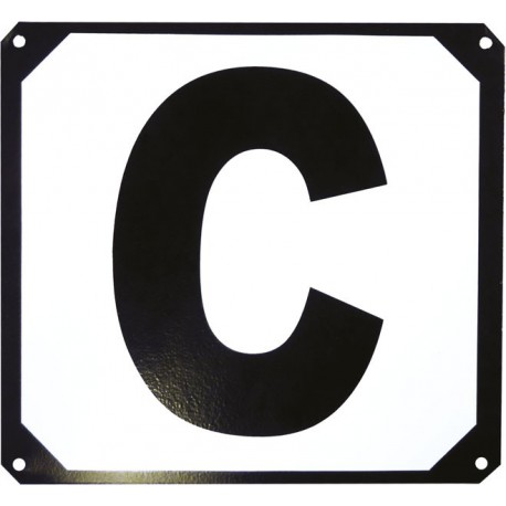 En métal peint avec lettres sur adhésif P.V.C.. Fixation par 4 vis.