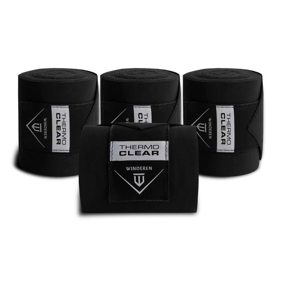 Les bandes de repos Winderen Thermo Clear et les sous-bandes Winderen Thermo Silver se complètent parfaitement et soutiennent la régénération des jambes du cheval pendant le repos au box.