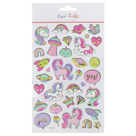 Planche d’adhésifs en relief, motif licorne. Ne convient pas aux enfants de moins de 36 mois.
