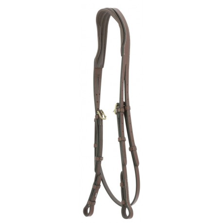Têtière de forme découpée, doublée cuir vachette matelassé. Petite bordure matelassé sur le dessus.