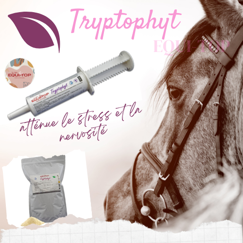 TRYPTOPHYT Seringue est un aliment complémentaire diététique pour chevaux enrichi en vitamines B1, B2 et B6 et en Tryptophane. Objectif nutritionnel particulier: Atténuation des réactions au stress.